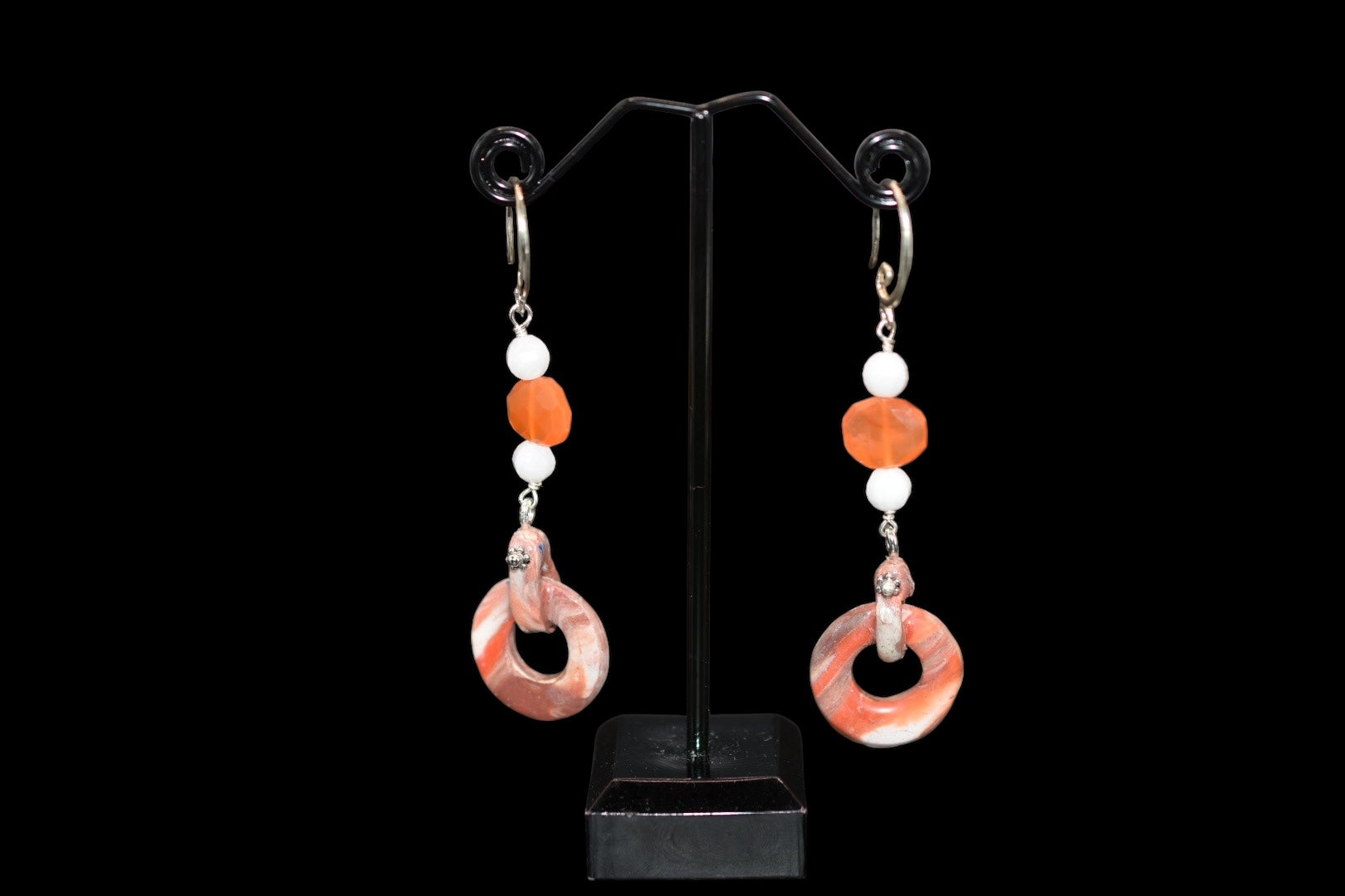 Brown and orange Polymer Clay Earrings with Semiprecious stone's