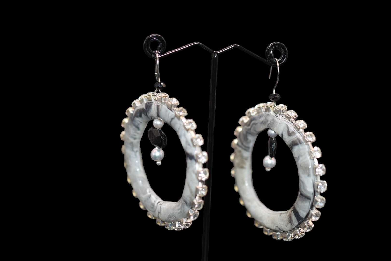 White and Black Polymer Clay Earrings with Semiprecious stone's